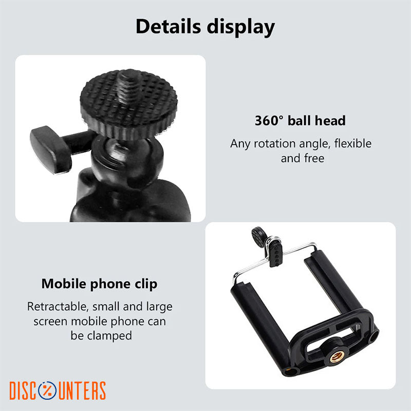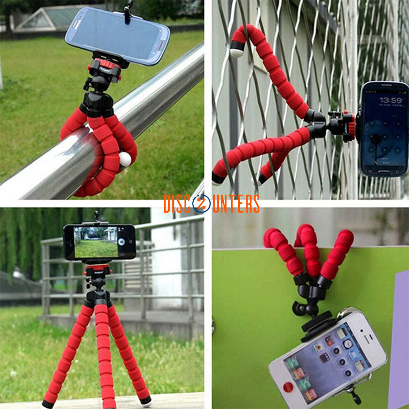Bendable tripod. Adjustable octopus style legs help to capture clean shots from any angle even in the move. You can place the tripod on a plane or slope, or wrap it on a small tree and post.